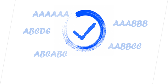 AAAAAA、ABCDE、AAABBB、AAAAA、AAAA、ABCD、AABBCC、ABCABC等